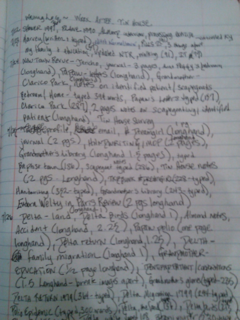 Everything I write starts by hand. Once I have a written draft, I type it. Print it. Read it out loud. Annotate by hand. Revise again. Take it to workshop. There I read it to my peers, take notes of where it seems their attention or mine wanders. I take notes on their feedback. Repeat the process.